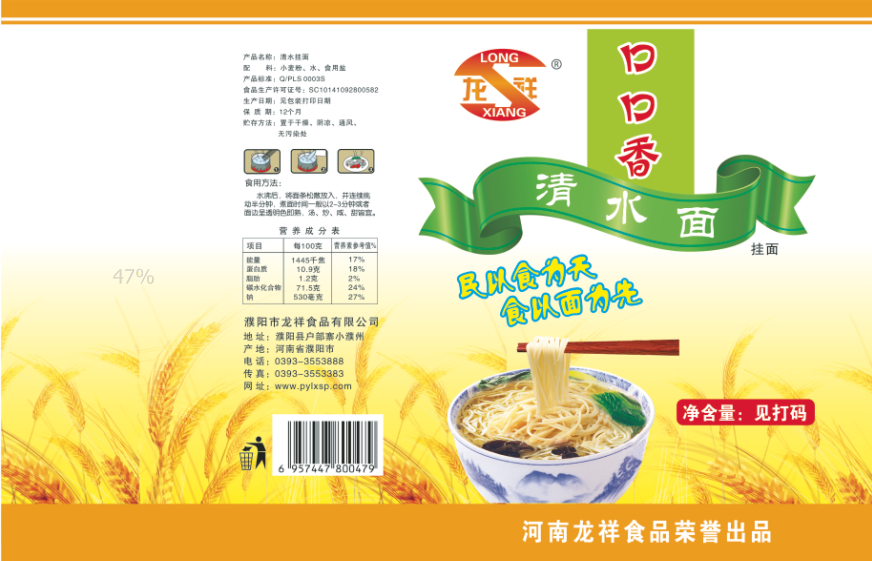 濮陽(yáng)市龍祥食品有限公司位于河南省濮陽(yáng)縣戶部寨鎮(zhèn)小濮州,始建于1994年,前期投資200萬(wàn)元,經(jīng)過(guò)幾年的努力,大力開發(fā)市場(chǎng),由于市場(chǎng)的需求量急劇上升,出現(xiàn)供不應(yīng)求,于2004年擴(kuò)建,建成一座新型的現(xiàn)代化面粉加工企業(yè),并擁有全國(guó)先進(jìn)全自動(dòng)生產(chǎn)設(shè)備一套,產(chǎn)量由以前的100噸/天,提高到現(xiàn)在400噸/天。 2012年再次擴(kuò)大規(guī)模申請(qǐng)為濮陽(yáng)市龍祥食品有限公司,注冊(cè)資金500萬(wàn)元。2012年又投資800萬(wàn)元新建掛面生產(chǎn)線一條,日產(chǎn)掛面50噸。龍祥食品有限公司現(xiàn)有職工120余人,總工程師1人,專業(yè)技術(shù)人員10人,經(jīng)濟(jì)師1人,會(huì)計(jì)師1人,銷售人員2人,優(yōu)秀專業(yè)人員20余人。  龍祥公司自創(chuàng)建以來(lái),社會(huì)效益十分可觀。公司一直以“今天的質(zhì)量,明天的市場(chǎng)”為信念,“一切為了客戶需求,竭誠(chéng)追求完美品質(zhì)”為企業(yè)宗旨,走專業(yè)化經(jīng)營(yíng)和職業(yè)化管理的路子。
